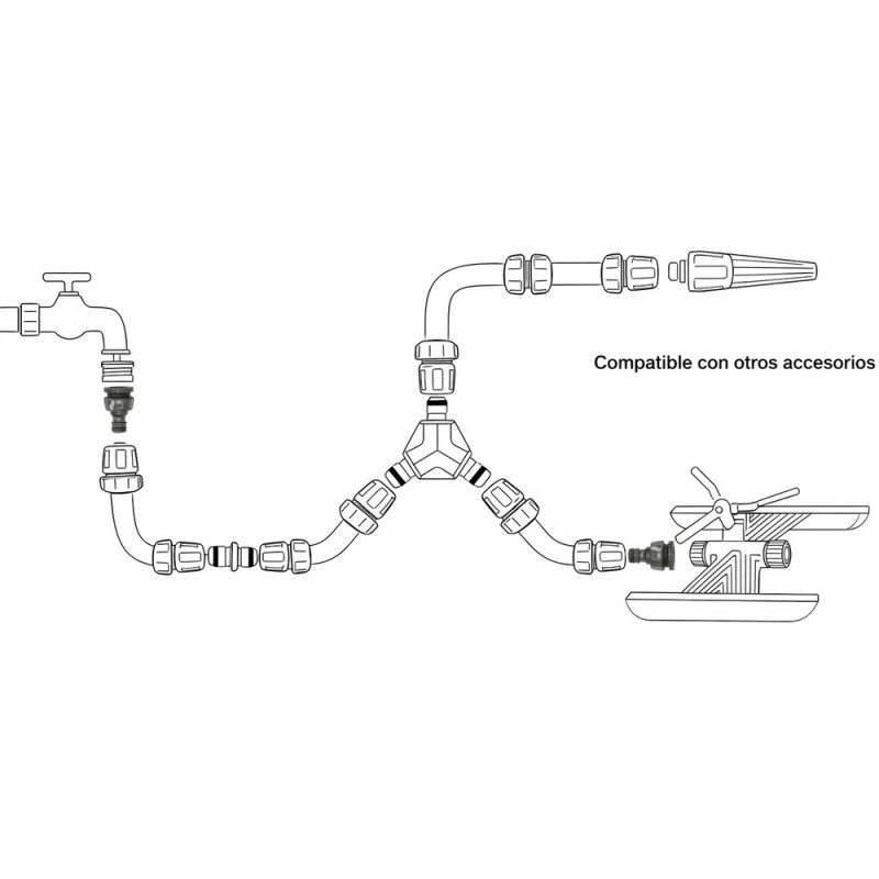 - Cuenta con enchufe rapido, compatible con todos los conectores de mangueras.