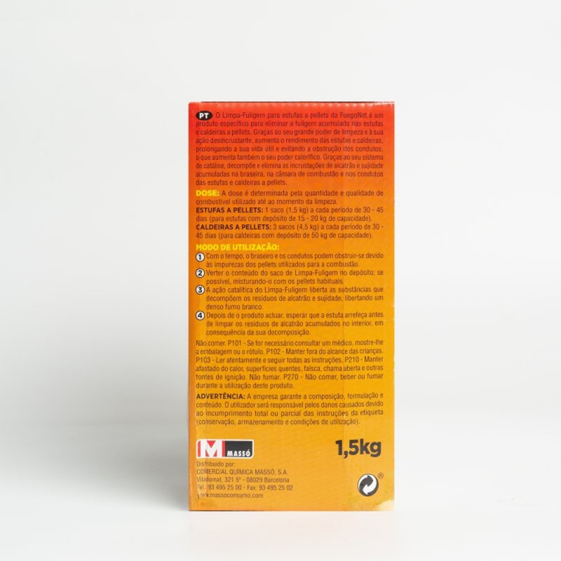 - Para estufas, basta con una bolsa de 1,5 kg cada 30-45 días. En calderas, se recomienda utilizar 3 bolsas de 4,5 kg en el mismo período. Mantén tus estufas y calderas funcionando al máximo rendimiento con este práctico deshollinador.