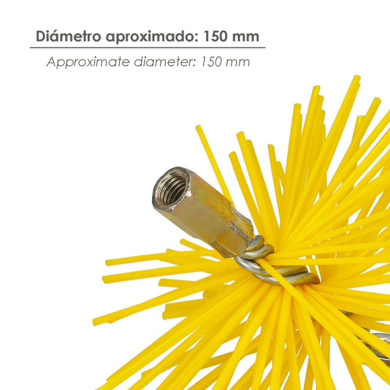 - Con un diámetro de aproximadamente 150 mm, este cepillo es compatible con una amplia variedad de kits de cepillos deshollinadores diseñados para estufas y chimeneas.