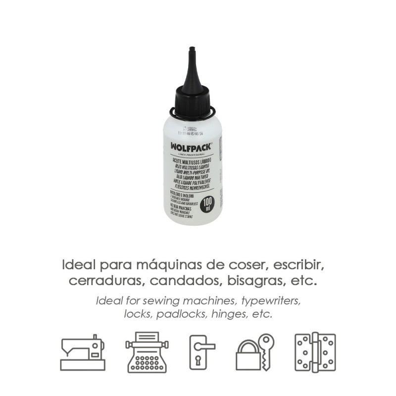 - No perjudica los materiales que entran en contacto con el, por su gran calidad puede utilizarse en los más diversos usos como cadenas de bicicleta, maquinas de coser, maquinas de escribir, candados, bisagras, cerraduras, etc.