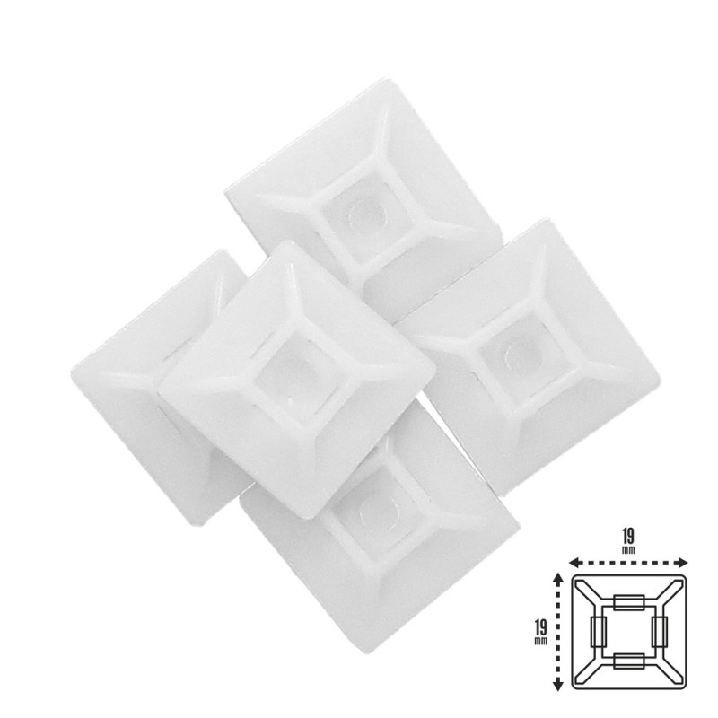 Base Adhesiva Para Bridas 19x19 mm. Blanca Bolsa 100 Unidades