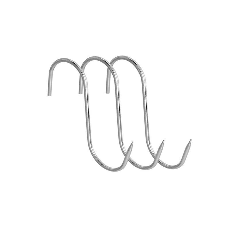 - Forma "S" con punta puntiaguda para facilitar el clavado en productos cárnicos.
