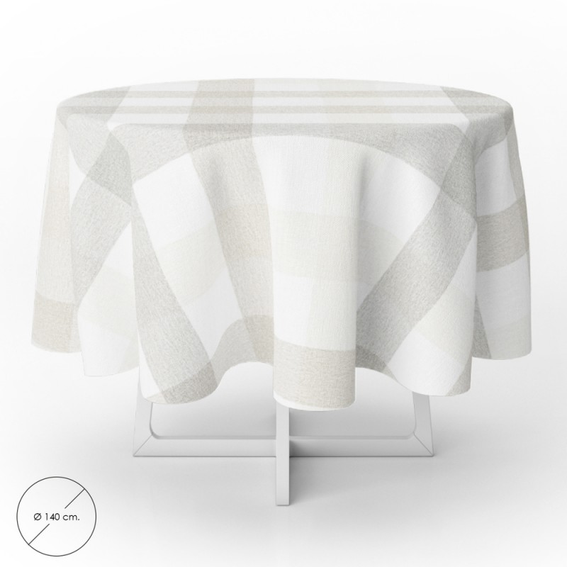Mantel Antimanchas Hule Redondo Ø 140 cm. Cuadros Beige