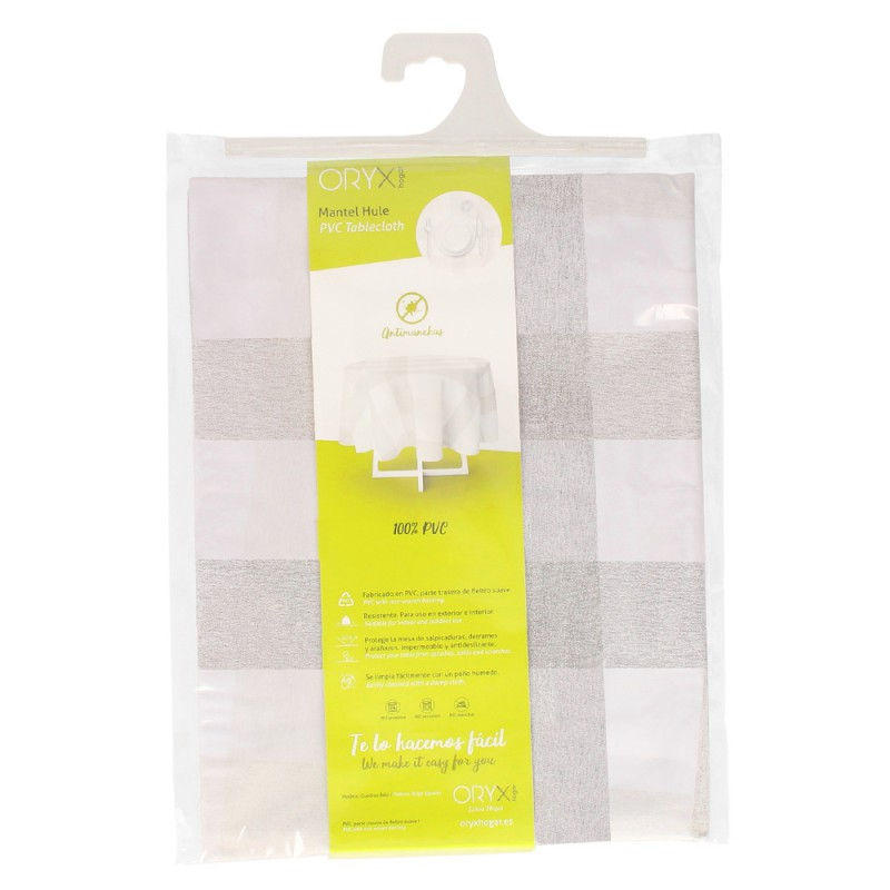 Mantel Hule Redondo Ø 140 cm. Cuadros Beige
