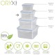 - Recipientes herméticos para una mejor conservación y un transporte sin derrames. Las tapas cuentan con un sistema de 4 cierres de bloqueo además están realizadas en silicona inyectada que se adhiere al recipiente aislando los alimentos de gérmenes y olores externos y favoreciendo su perfecta conservación.