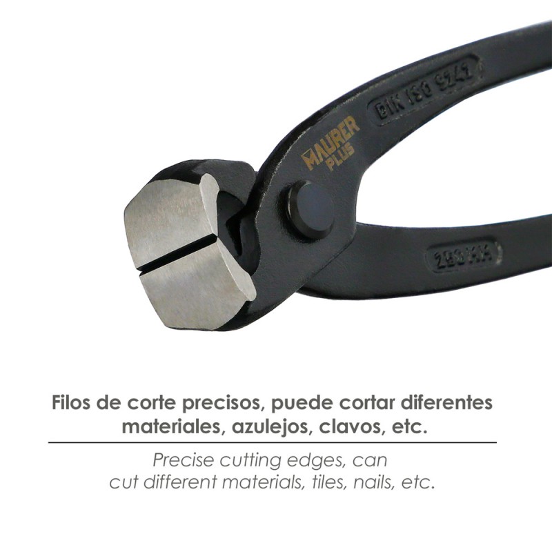 - El filo está pensado para agarre firme de materiales como alambre, barras pequeñas, pernos, clavos, etc. sirve para sujeción y doblado.